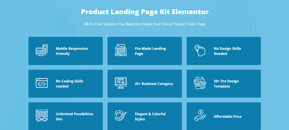 Toko Kit is a 50+ Product Landing Page Elementor Kit with Various Business Niche, it will assist you in creating responsive, product landing page that accomplish all of your business goals.